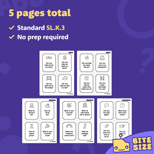 Kindergarten Ask and Answer Questions Card Game | SL.K.3