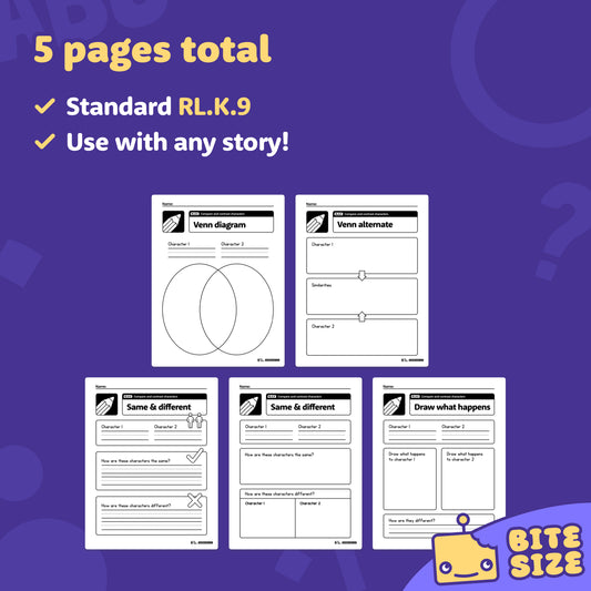 Kindergarten Compare and Contrast Characters Worksheets | RL.K.9