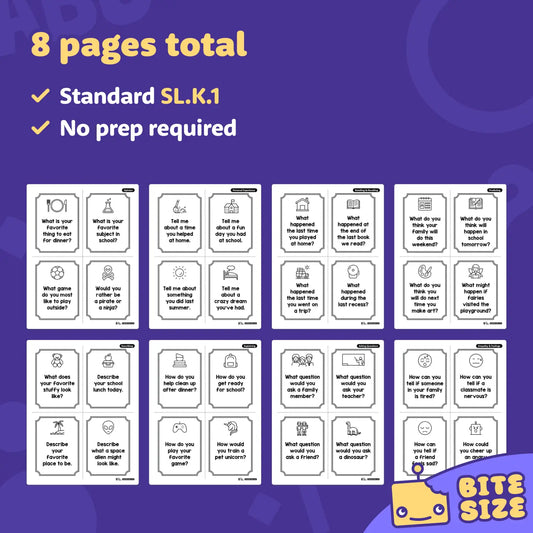 Kindergarten Conversation Starters Card Game | SL.K.1
