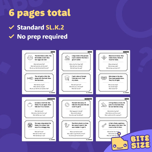 Kindergarten Listening Comprehension Stories Activity | SL.K.2