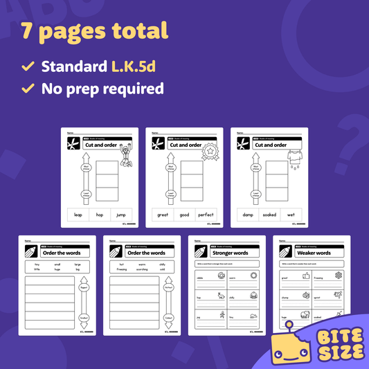 Kindergarten Shades of Meaning Worksheets | L.K.5d