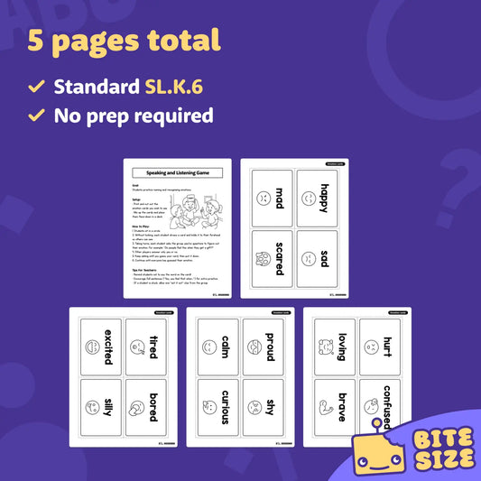 Kindergarten Describe People, Places, Things, & Events Card Game | SL.K.4