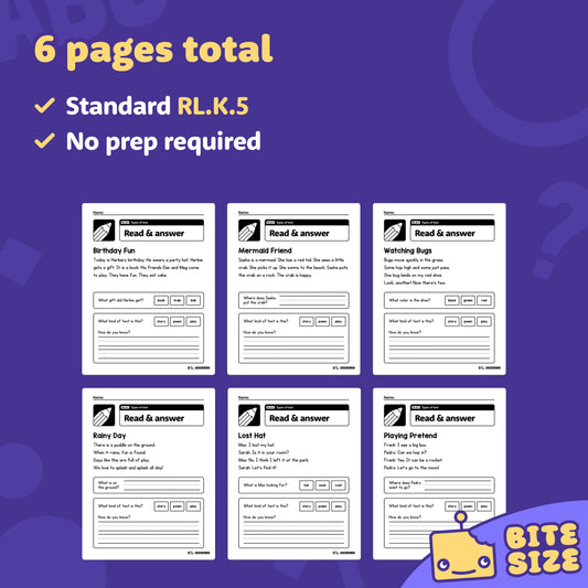 Kindergarten Ask and Answer Questions Worksheets | RL.K.1