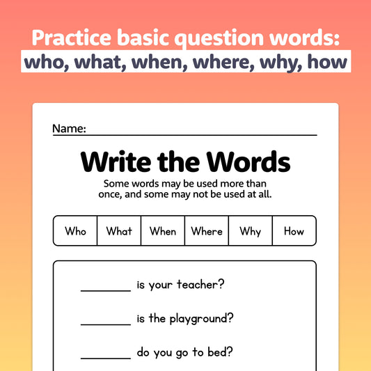 Question Words Worksheets