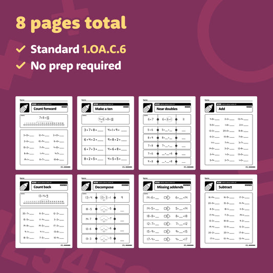 Add & Subtract Within 20 Worksheets | 1.OA.C.6