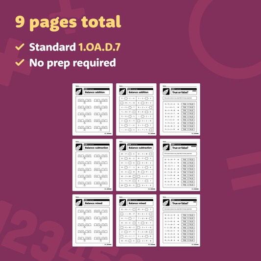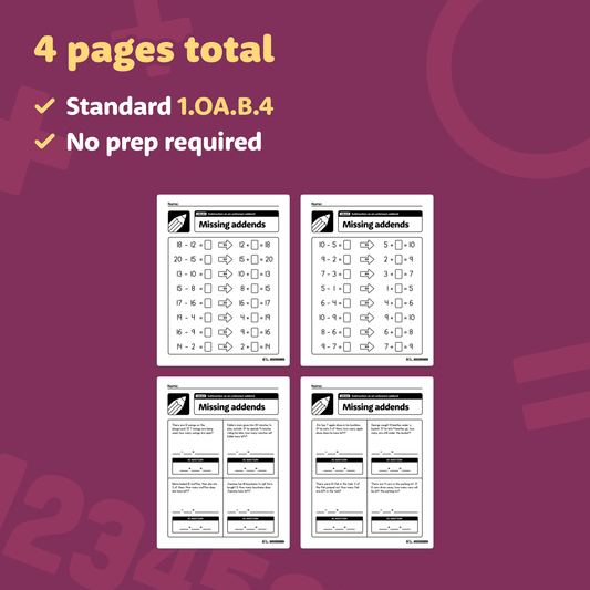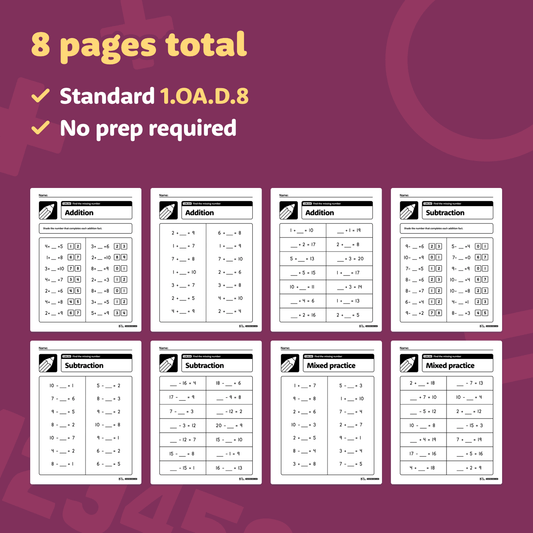 Missing Numbers in Equations Worksheets | 1.OA.D.8