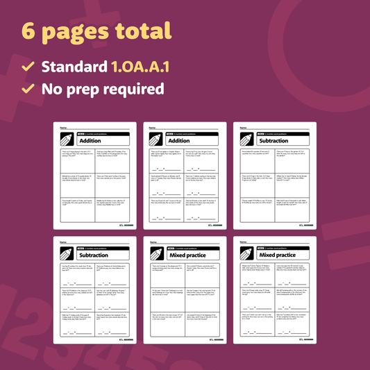 Two Step Word Problems Worksheets | 1.OA.A.2