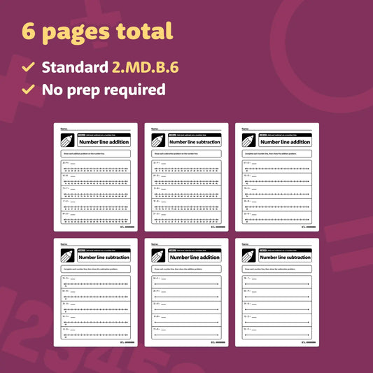 Add and Subtract on a Number Line Worksheets | 2.MD.B.6