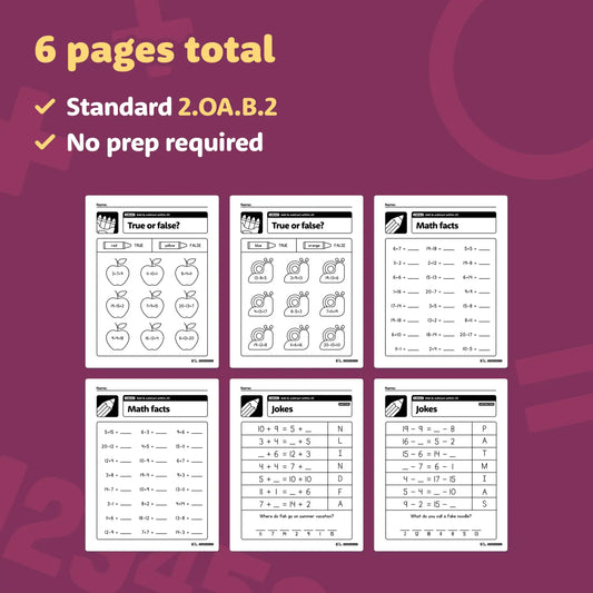 Add & Subtract Within 20 Worksheets | 2.OA.B.2