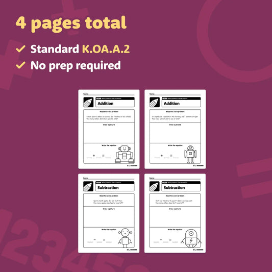 Addition and Subtraction Word Problems Worksheets | K.OA.A.2