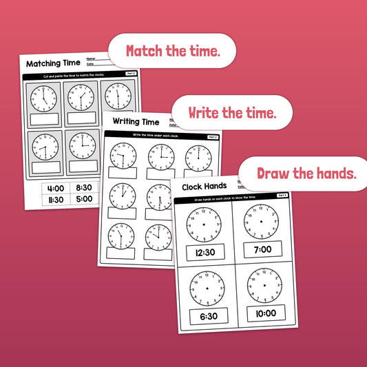 Telling Time to the Hour and Half-Hour Worksheets | 1.MD.B.3
