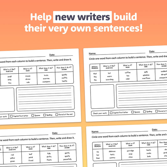 Kindergarten Spaces Between Words Worksheets | RF.K.1c