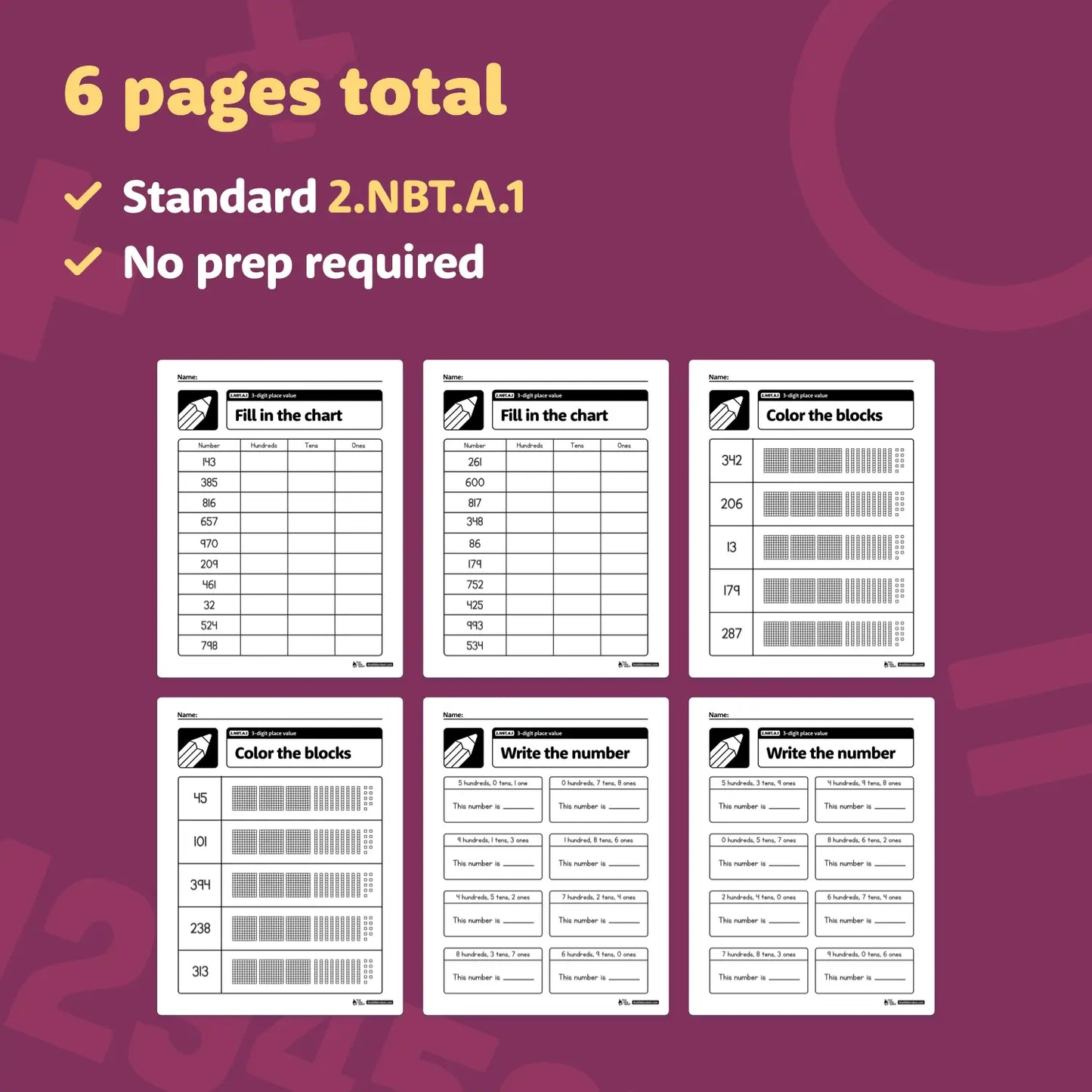 3-Digit Place Value Worksheets | 2.NBT.A.1