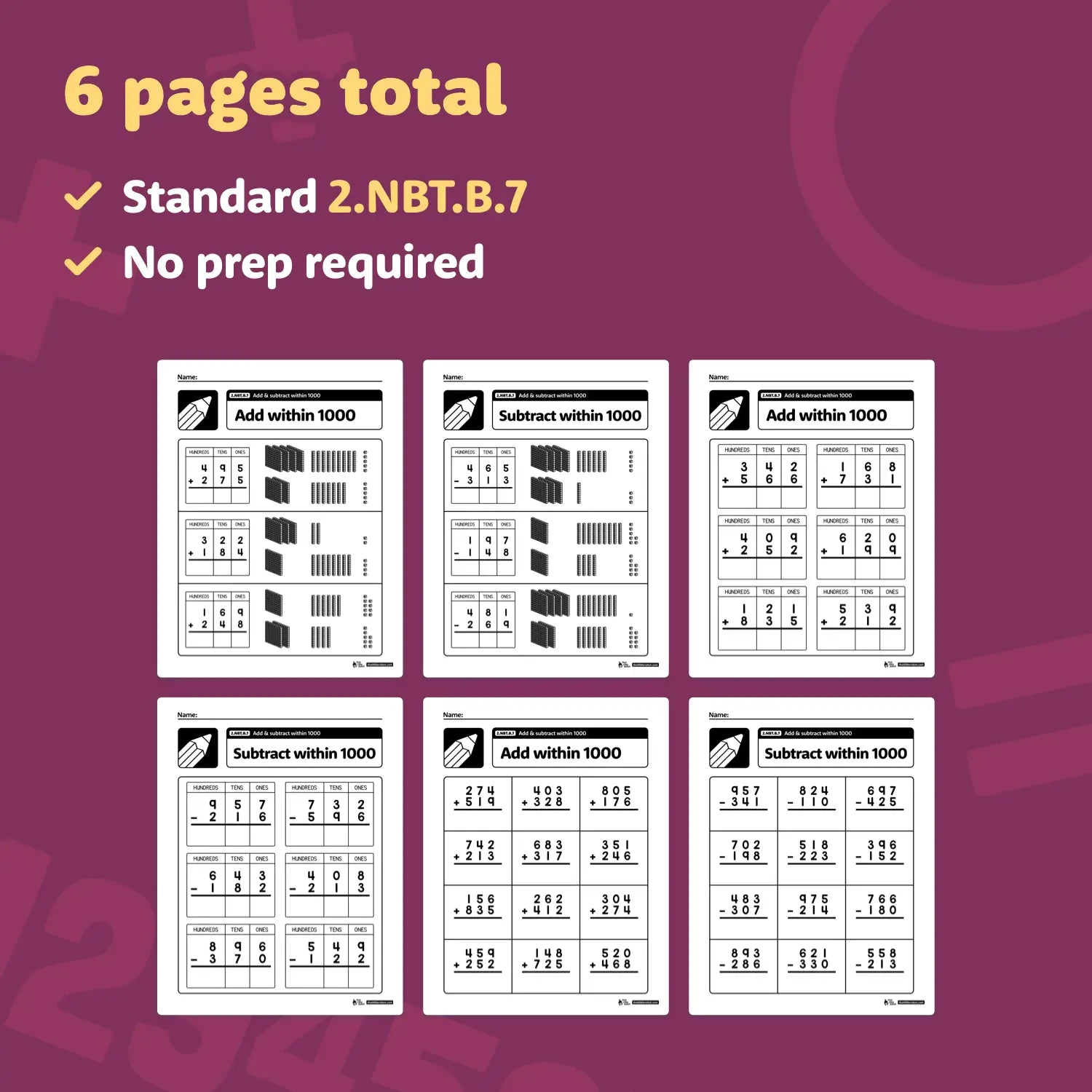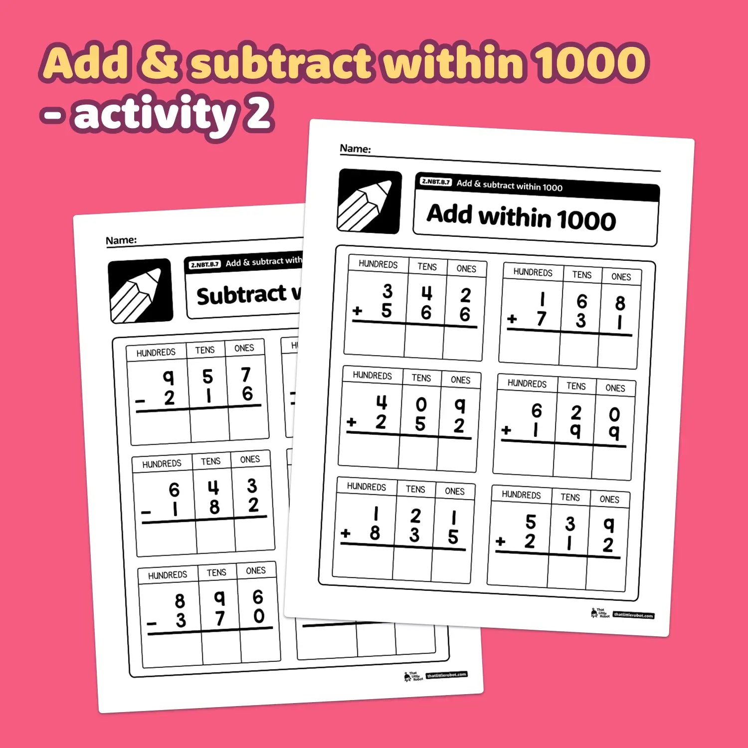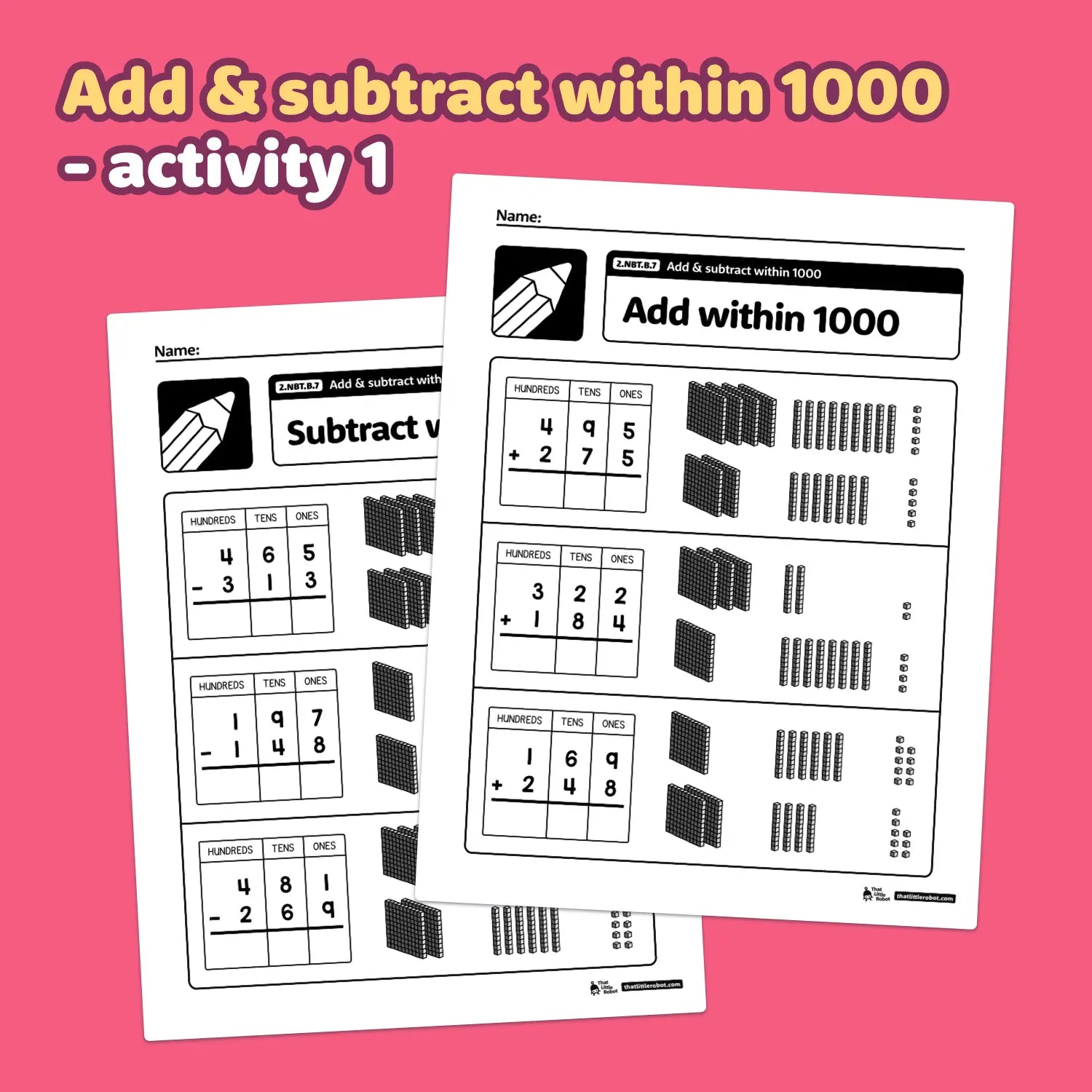 Turn that tricky 2nd grade adding and subtracting within 1000 standard into a set of easy, bite-size activities! These differentiated place value worksheets are a simple way to reinforce this critical Common Core base ten skill — perfect for no prep math centers and stations.