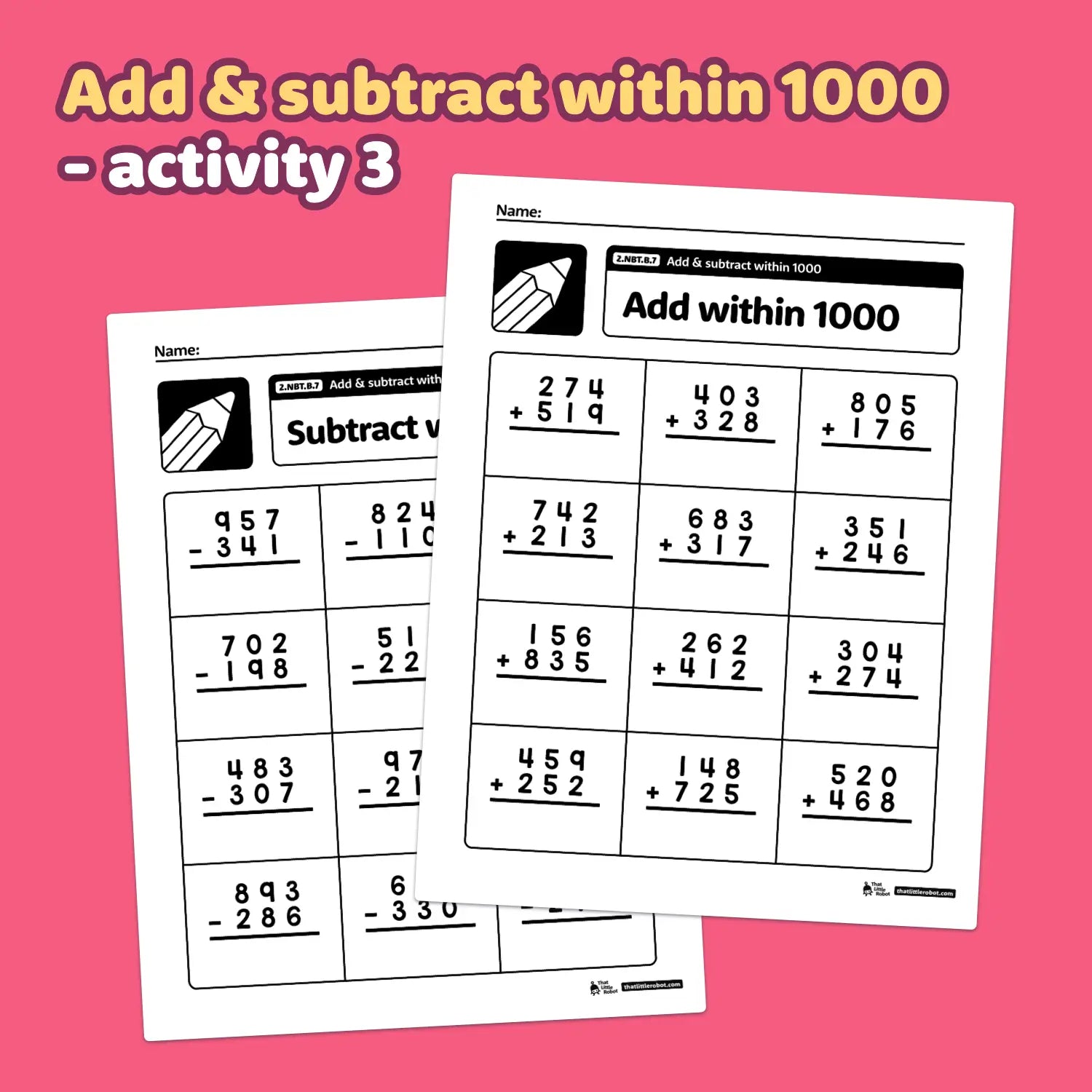 Add & Subtract Within 1000 Worksheets | 2.NBT.B.7