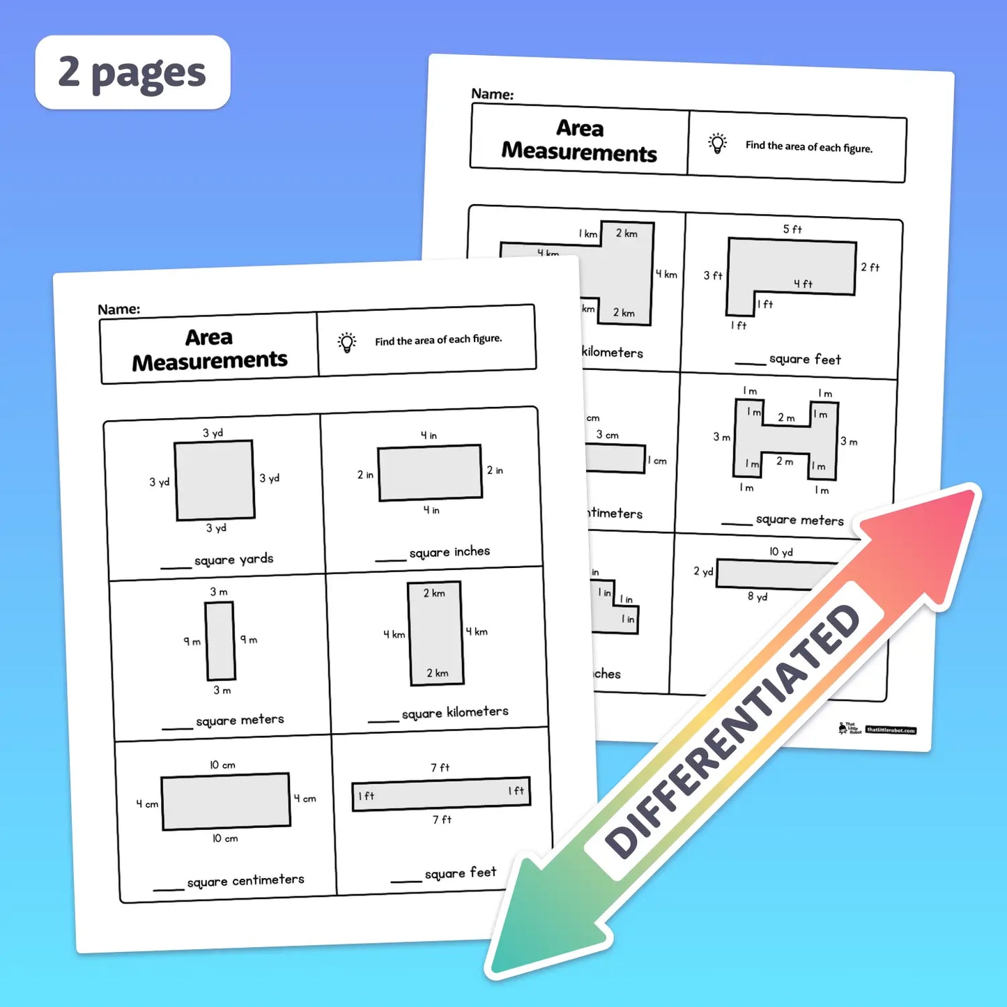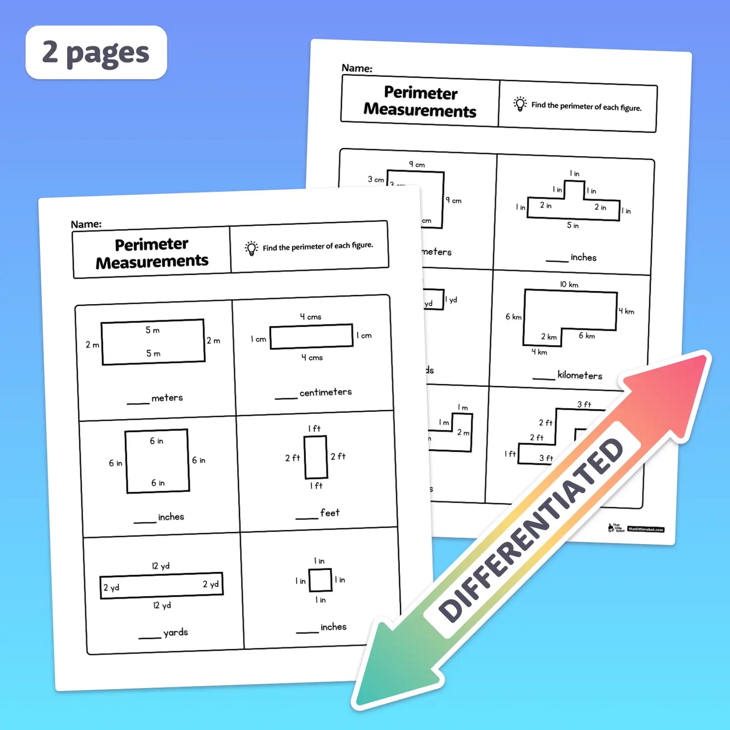 These no-prep area and perimeter printables make it easy to teach, practice, and review basic measurement skills. They're standards-based and fully differentiated — perfect for straightforward math centers, worksheets, intervention, and test prep.