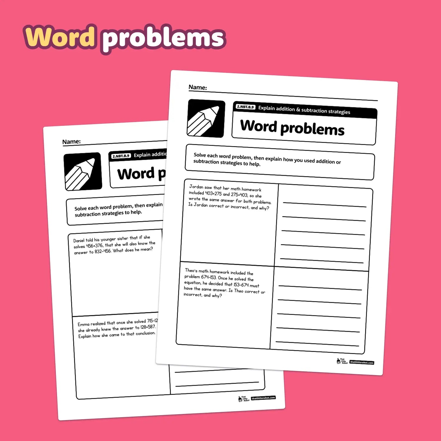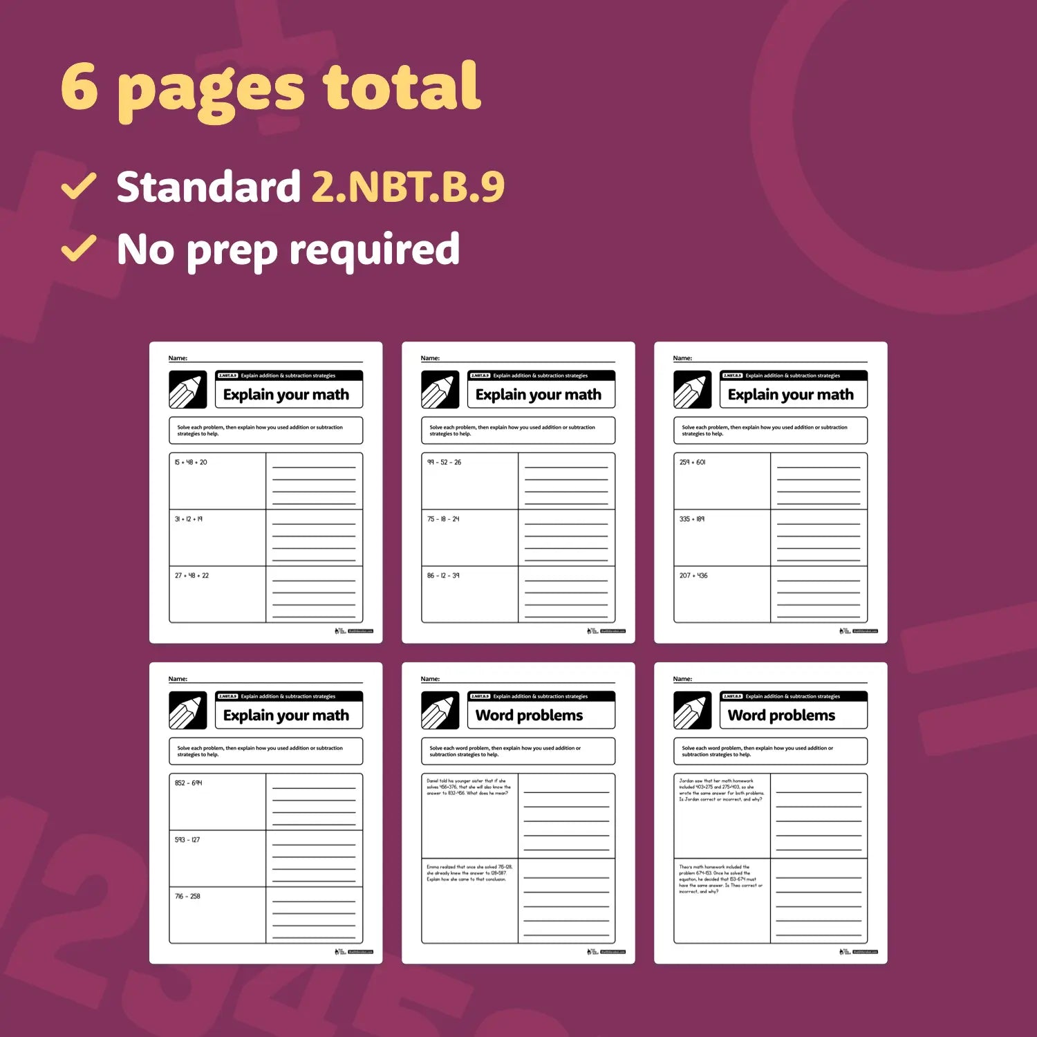 Turn that tricky 2nd grade explaining addition and subtraction strategies standard into a set of easy, bite-size activities! These differentiated place value worksheets are a simple way to reinforce this critical Common Core skill — perfect for no prep math centers and stations.