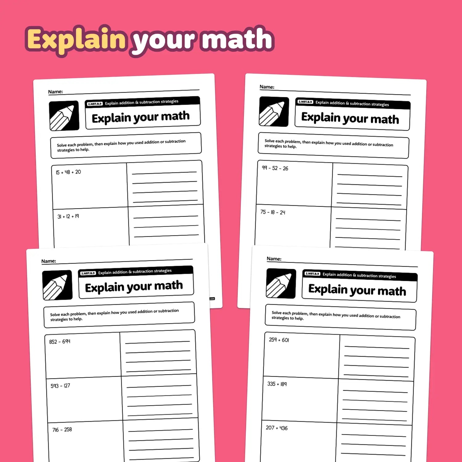 Explain Addition & Subtraction Strategies Worksheets | 2.NBT.B.9
