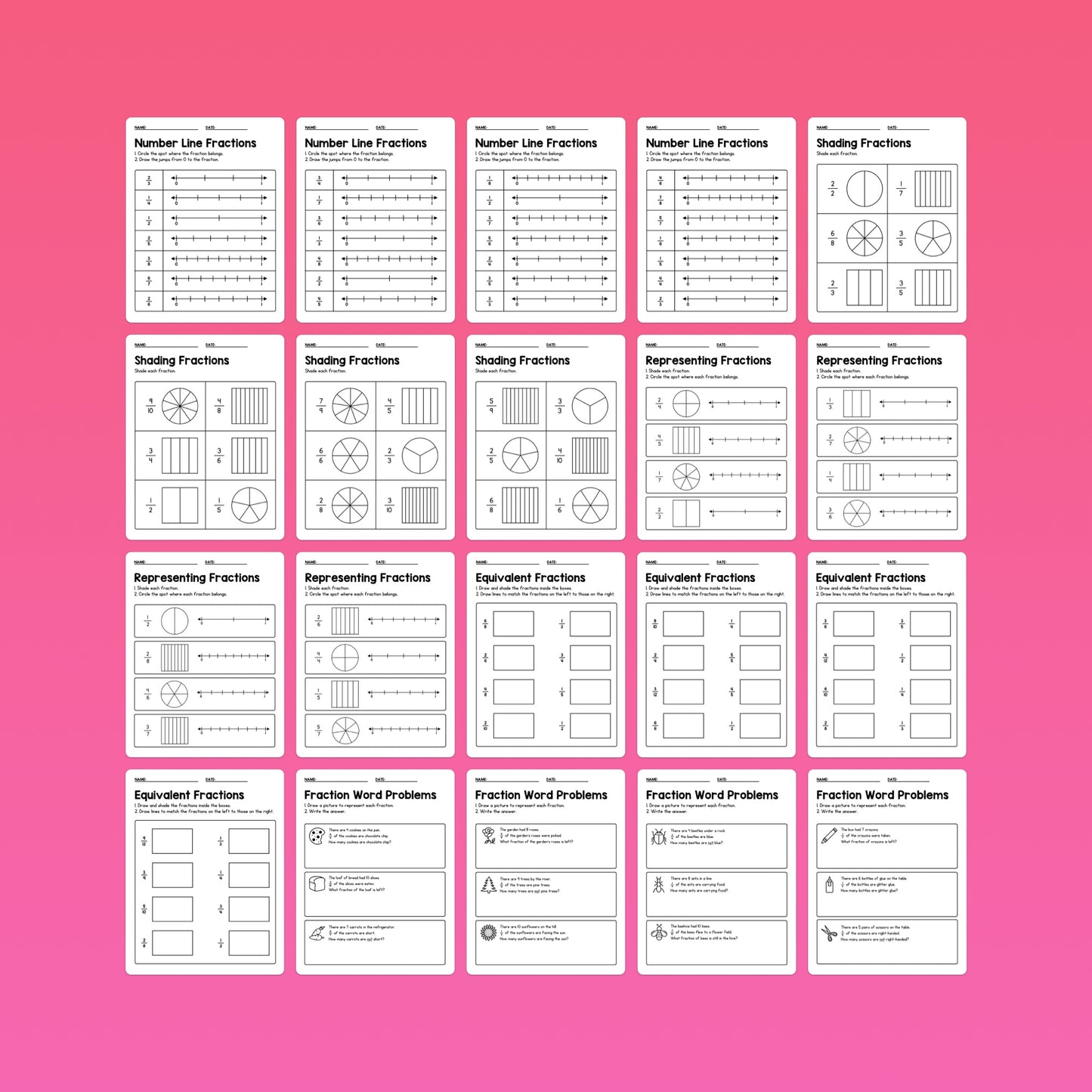 Fuel confidence in fractions with these comprehensive worksheets! From number lines to word problems, this set is the perfect skill-builder for your students.
