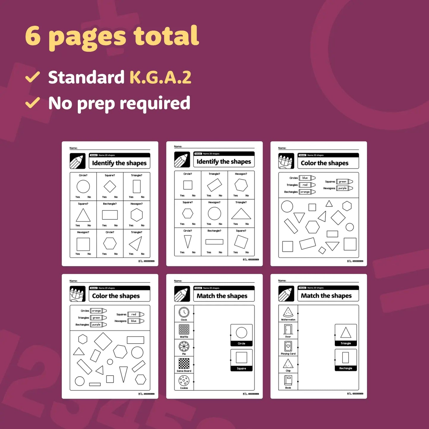Turn that tricky naming 2d shapes standard into a set of simple, bite-size activities! These differentiated K.G.A.2 worksheets are an easy way to practice kindergarten Common Core math — perfect for any center or lesson involving geometry and basic two-dimensional shapes.