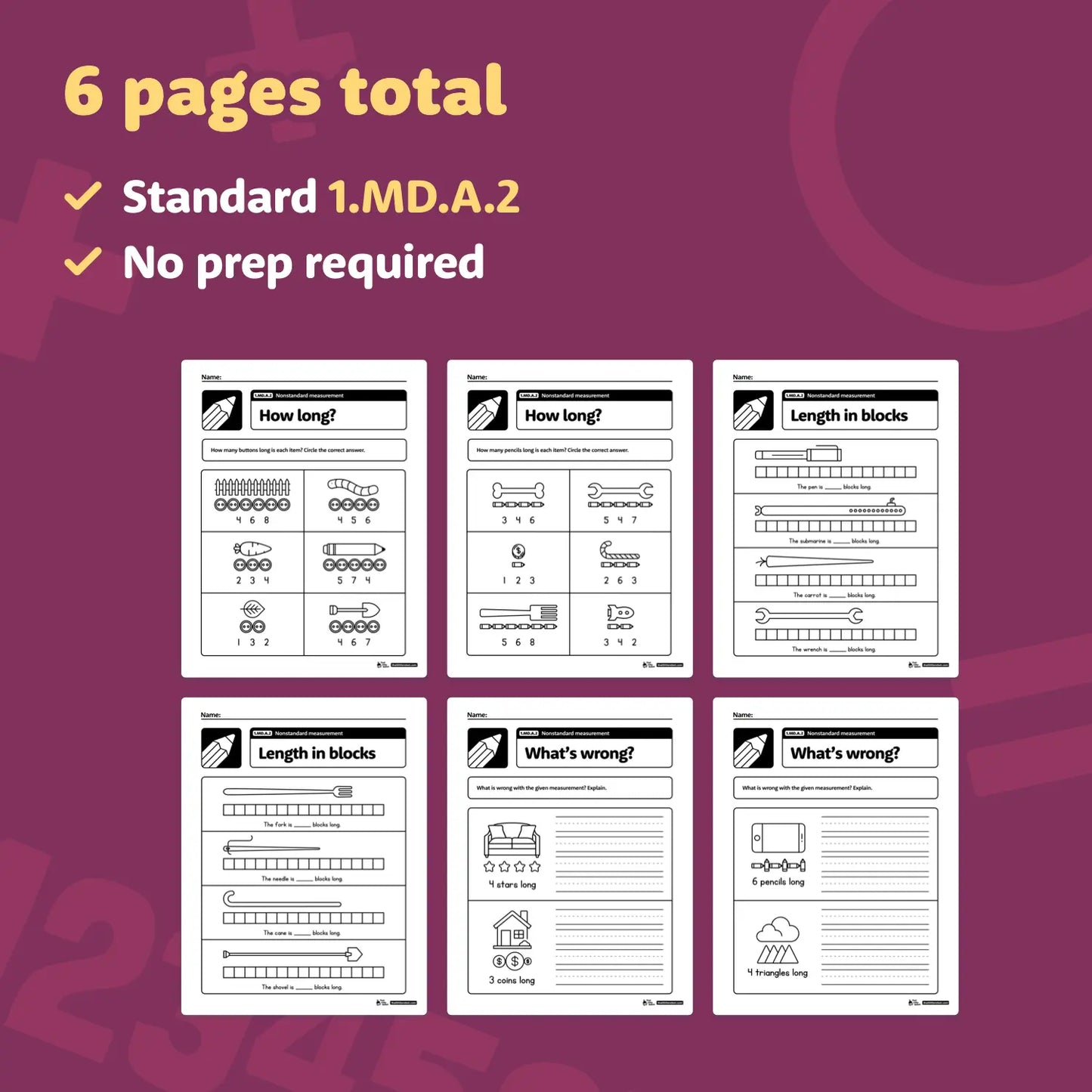 Nonstandard Measurement Worksheets | 1.MD.A.2
