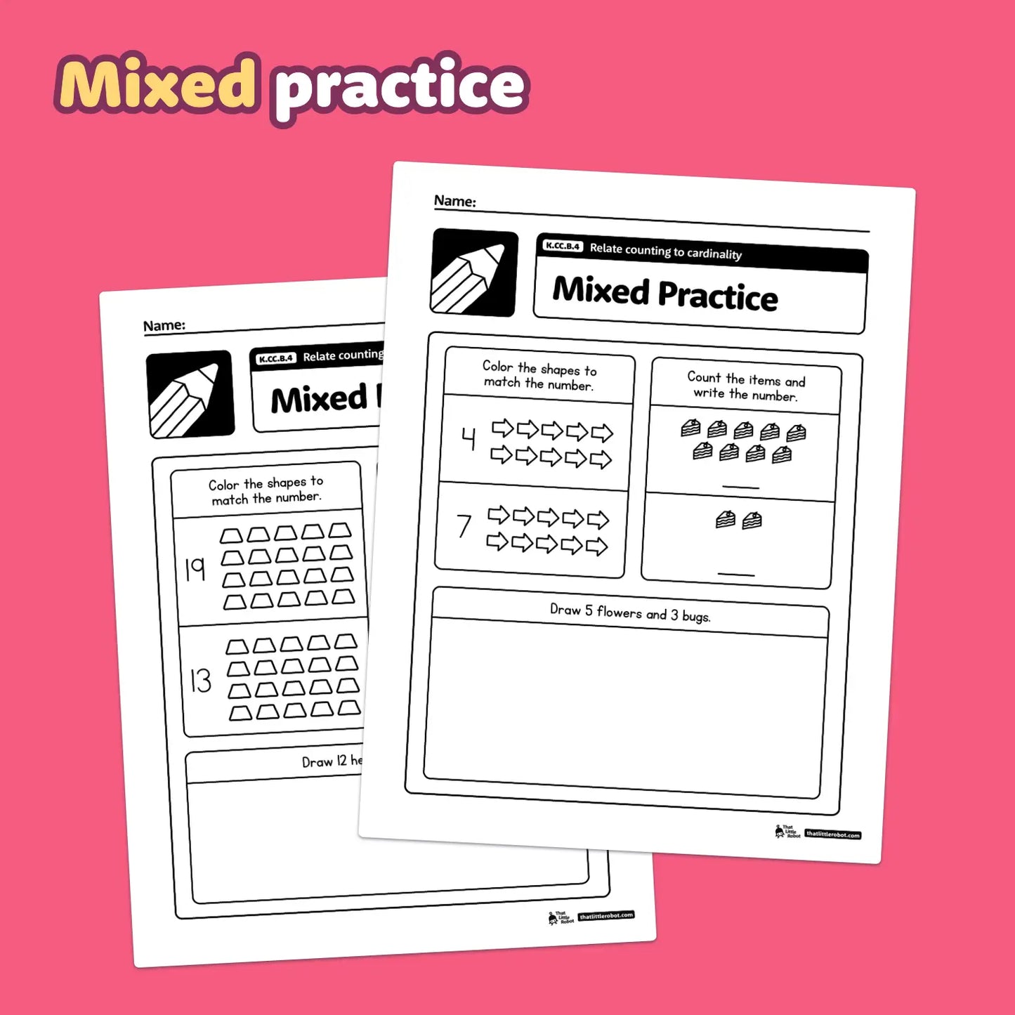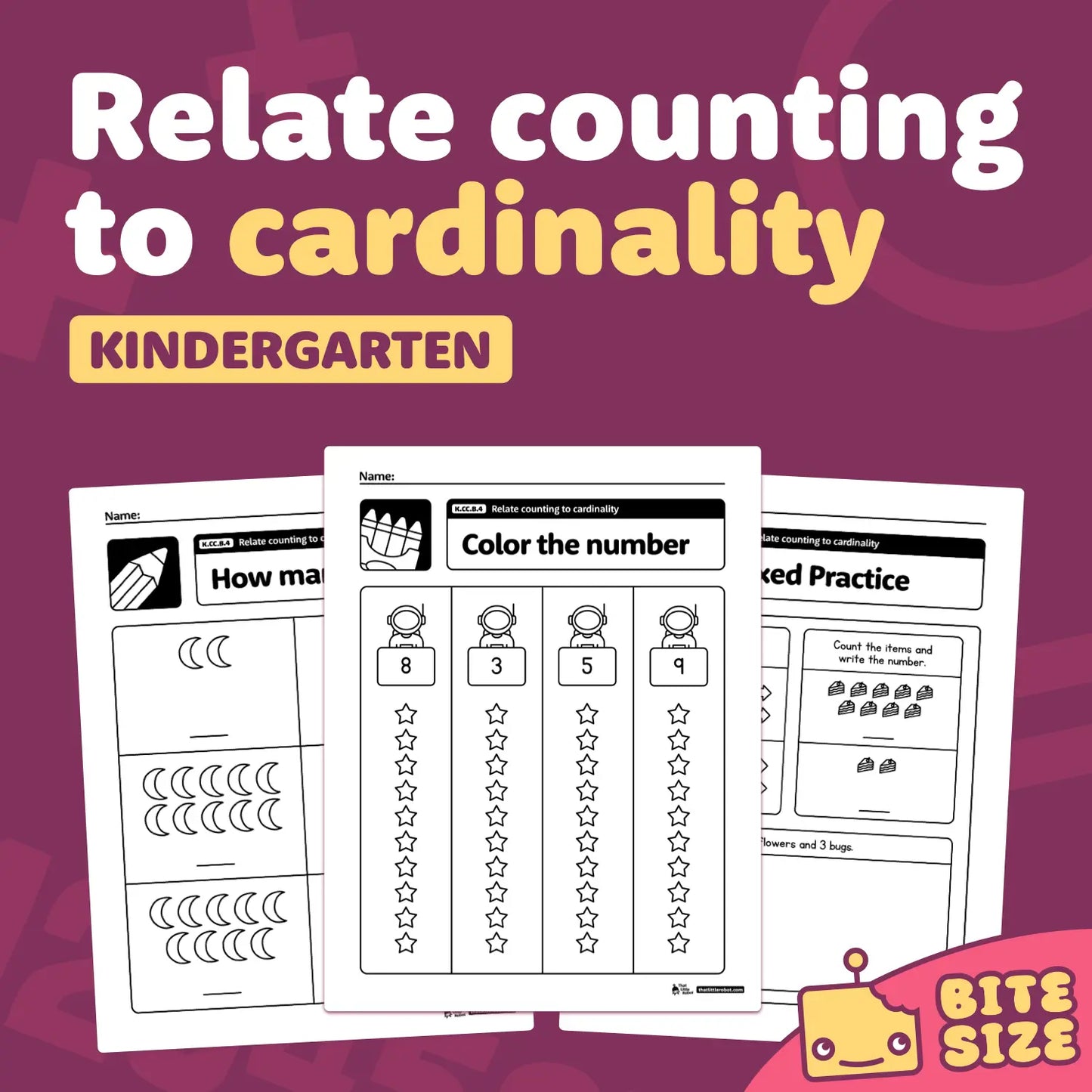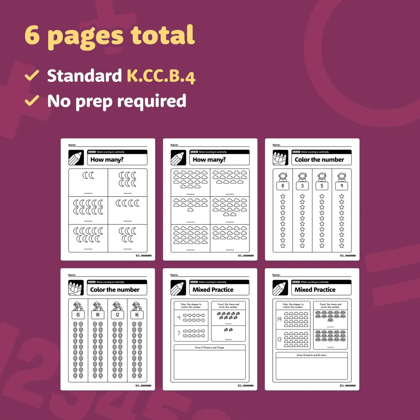 Relate Counting to Cardinality Worksheets | K.CC.B.4