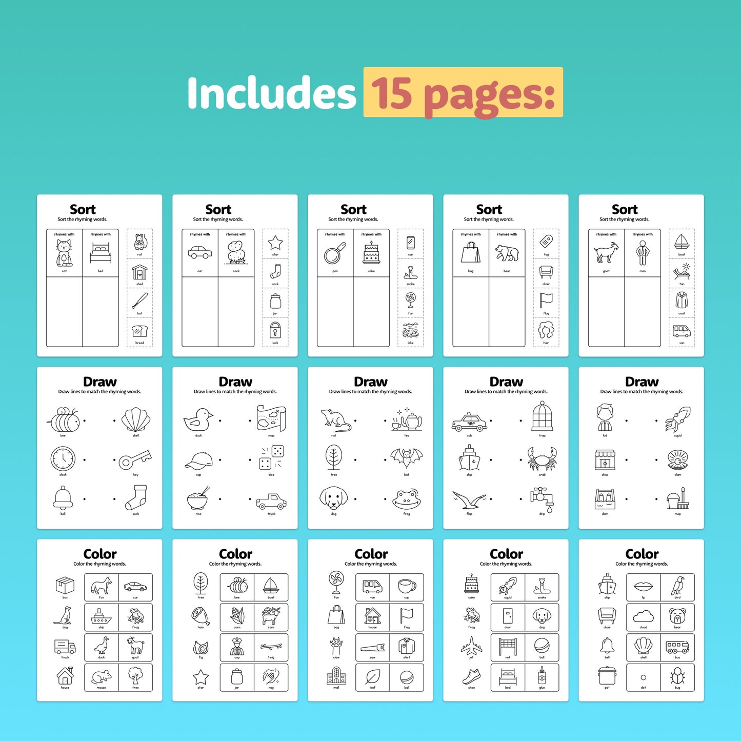 Make learning playful and intuitive! Beginners and visual learners will love getting hands-on with these rhyming words worksheets.