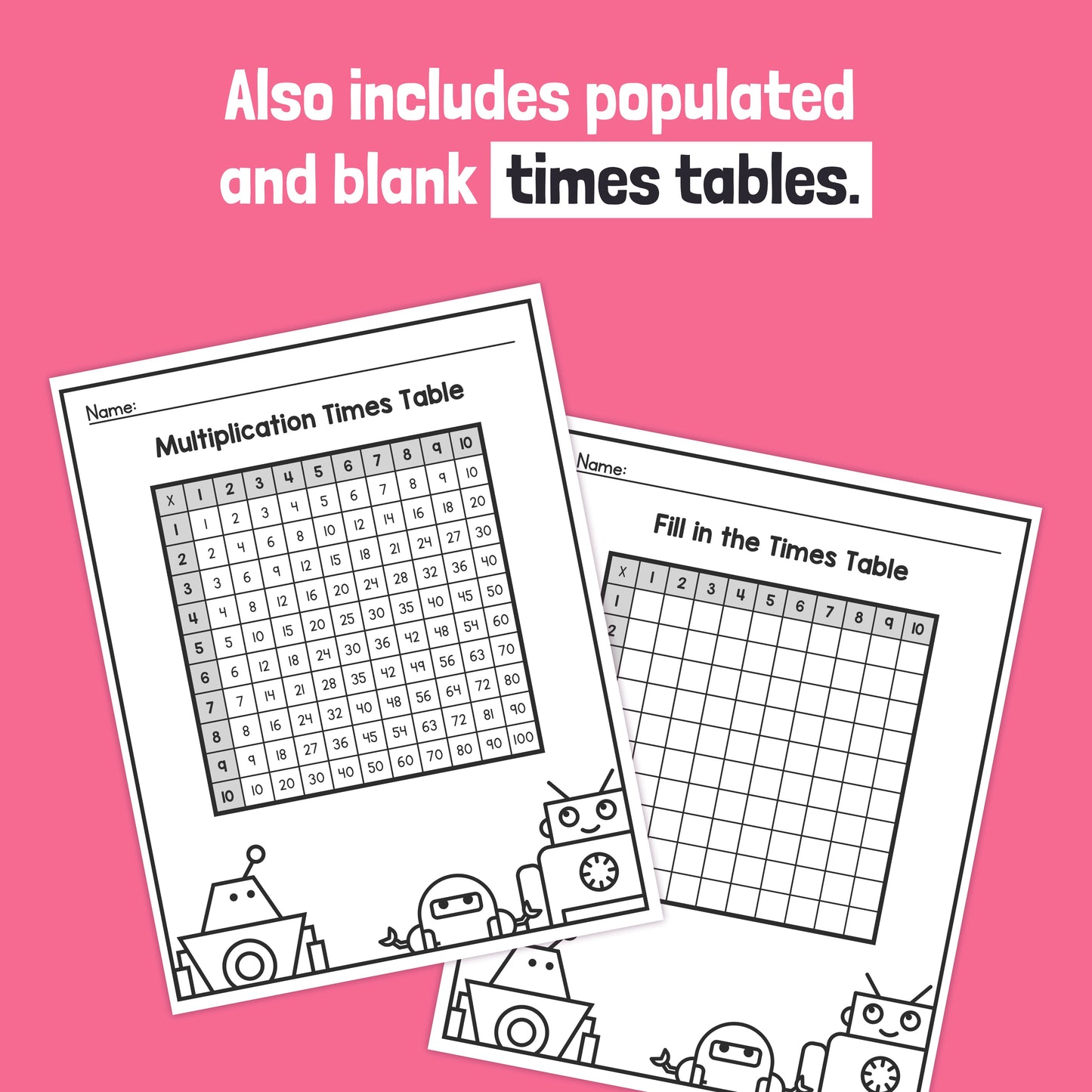 Robot Times Table Worksheets