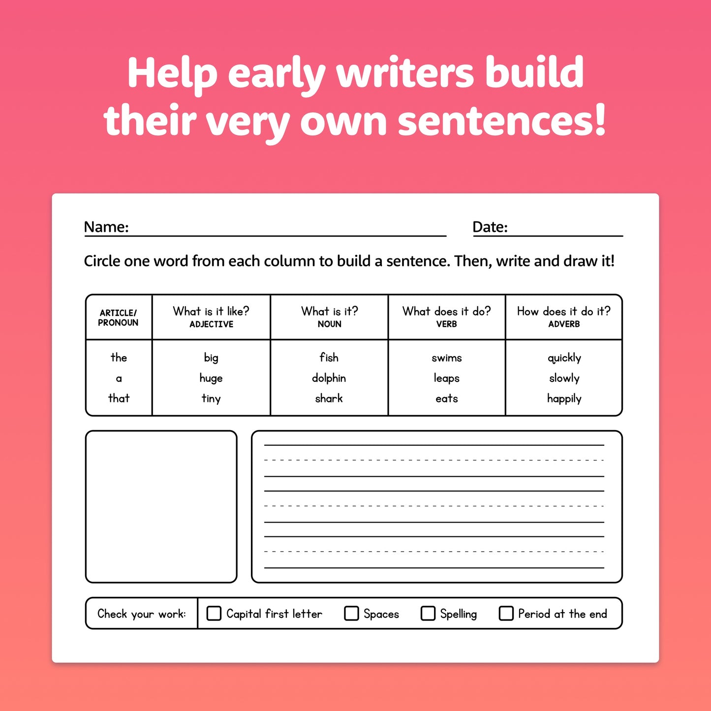 Make sentence-building an adventure! Choose words from a themed bank to create full, sunny sentences, making learning as exciting as summer break.
