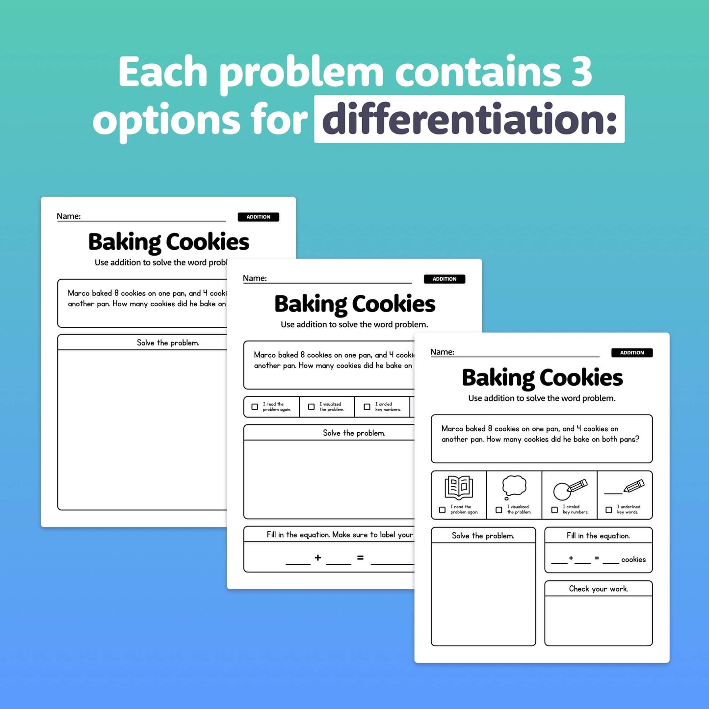 Strengthen beginner math skills with these addition and subtraction word problems, tailored for mastery within 20. With three levels of differentiation, they're perfect for diverse student needs.