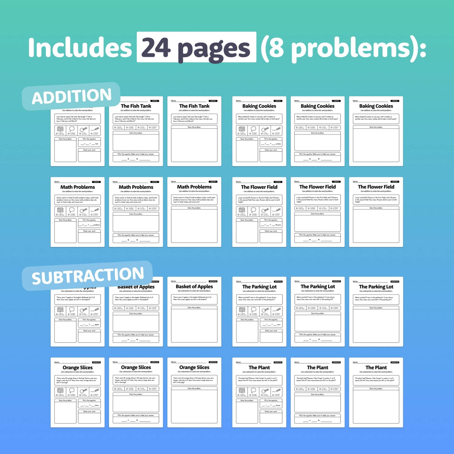 Word Problems: Add & Subtract Worksheets